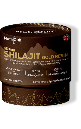 Compared to other Shilajit containing products which provide plain Shilajit or in combination with other generic herbs, Nutricult Shilajit Gold Resin is fortified with KSM-66® Ashwagandha – the full spectrum Ashwagandha root extract – along with other power-packed ingredients, that makes Nutricult Shilajit Gold Resin a powerhouse for strength, energy, and resilience.